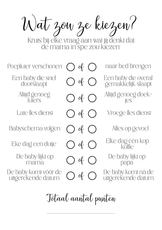 Spelkaarten 'Wat zou ze kiezen"? – Babyshower