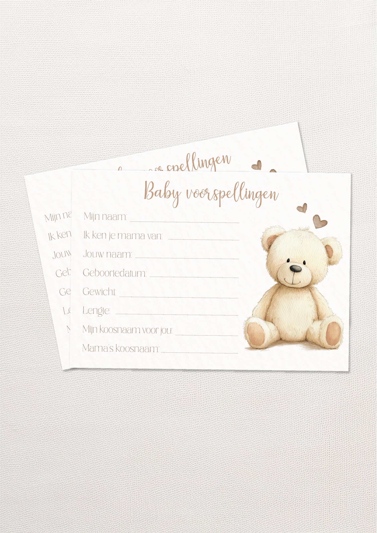 Breng extra gezelligheid in het feest met een babyshower spel in beertjesthema. Makkelijk te spelen, leuk voor alle gasten en perfect om het ijs te breken. Het spel sluit visueel volledig aan op de rest van de collectie, waardoor alles in dezelfde stijl blijft.