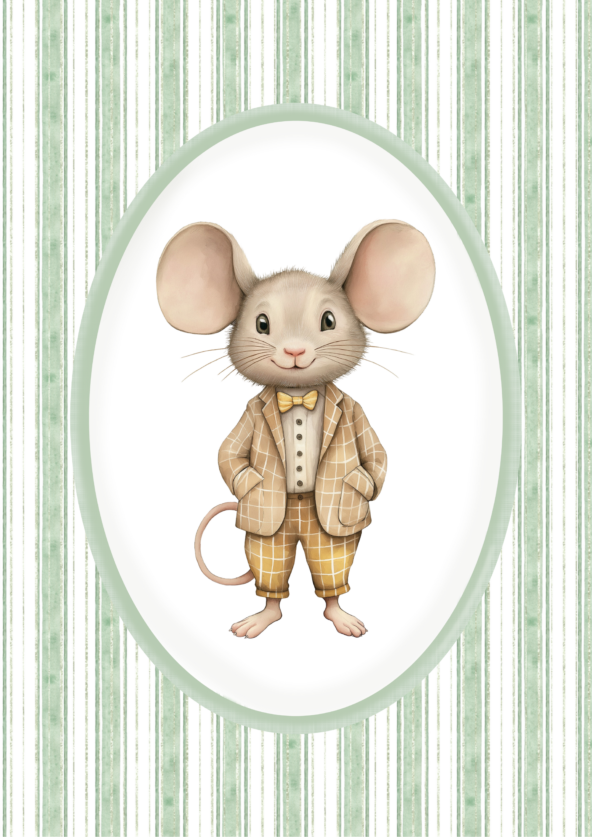 Een lieve muis in een zachte vintage groene tint met fijne strepen. De rustige kleur en het eenvoudige design geven de kinderkamer een warme, natuurlijke uitstraling.